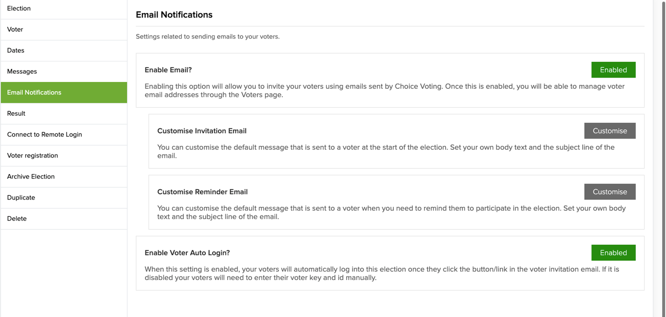 Email customisation is arriving soon. using your own crafted words, or a mix of your own wording and our dynamic tokens, you can customise the look and feel of the emails sent to your voters to inform them how to vote.